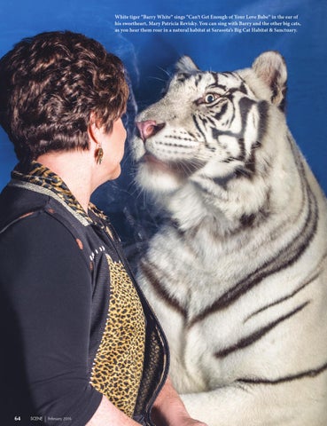 White tiger “Barry White” sings “Can’t Get Enough of Your Love Babe” in the ear of his sweetheart, Mary Patricia Revisky. You can sing with Barry and the other big cats, as you hear them roar in a natural habitat at Sarasota’s Big Cat Habitat & Sanctuary.