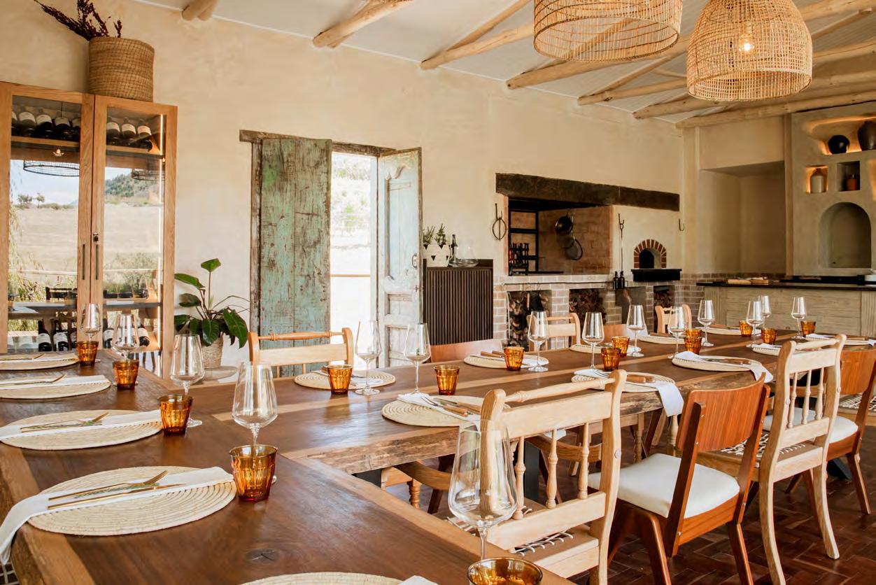 Tulbagh is a sleepy little town cradled by the dramatic peaks of the Obiqua Mountains to the west, the Winterhoek Mountains to the north and the Witzenberg Mountains to the east. Utterly unspoiled, with vineyards and silver-leaved olive groves in every direction. Book The Tulbagh Hotel for a walking-distance stay from Tulbagh village and some of the prettiest views to boot. Everything about the surroundings is authentic – it almost feels like a bonus when the comfort levels and service standards are so impressive. The old Cape Dutch architecture that’s been oh-so-carefully restored has kept its original bones with sloping lines, exposed timber ceilings and terracotta tile flooring. Inside, it’s a riot of antiquarian exuberance – a dense layering of textures and influences. There’s a playful interplay between zestier elements and the almostintimidating dark wood furniture. The Tulbagh Hotel is all about unwinding – whether fireside in The Olive Terrace Bistro or in rooms from the subtle modernism