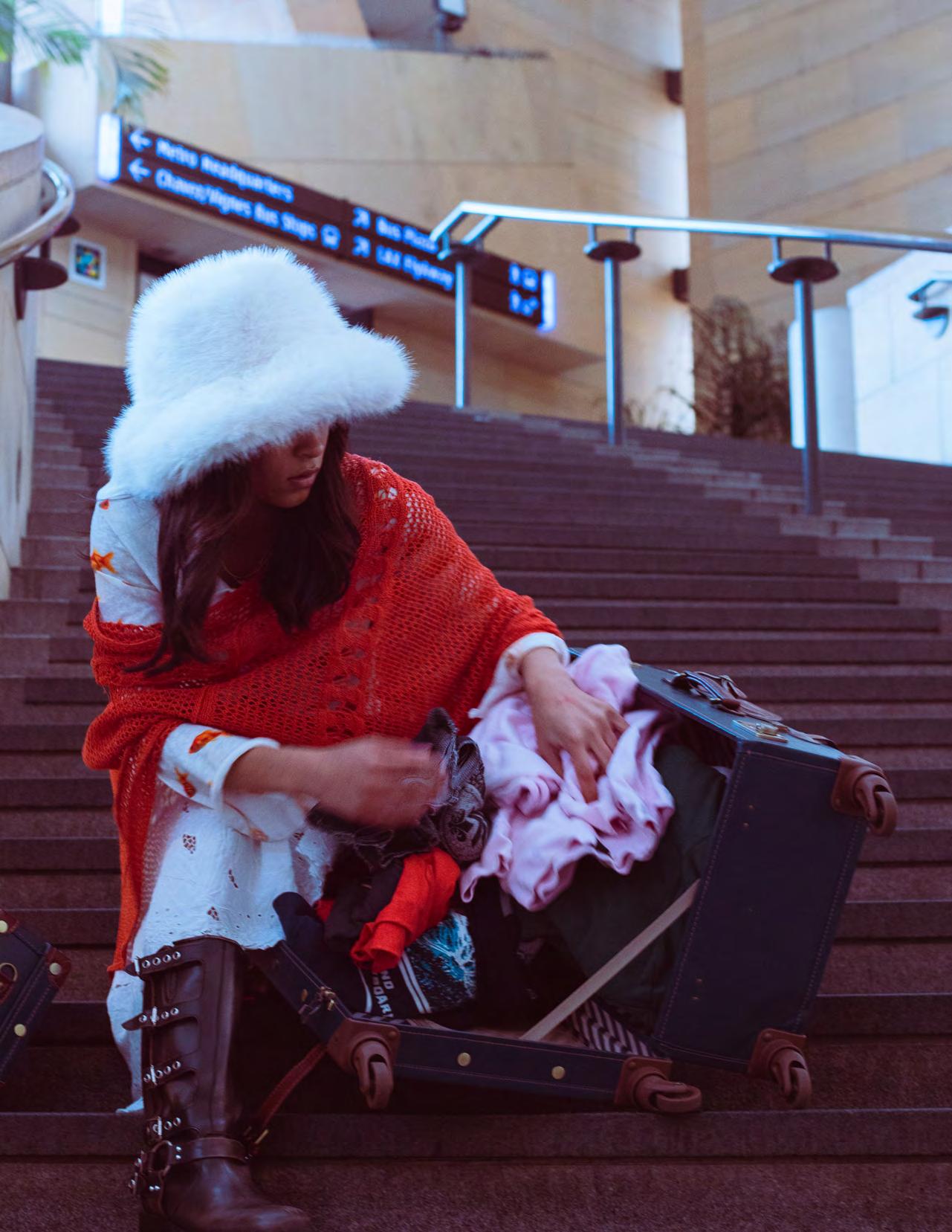 Warden ‘24 is a journalism major from Reno, NV. She auditioned for Disney when she was seven. She is pictured with her roommates throughout this piece.