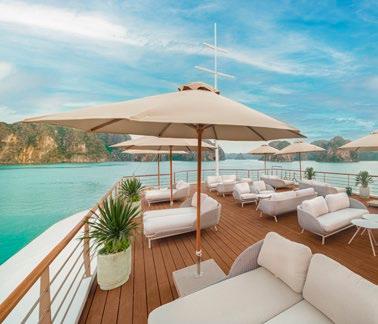 Featuring the largest lead-in suites on the Mekong, all suites on Scenic Spirit are one-bedroom balcony suites with separate living room, walk-in wardrobe and Scenic Sun Lounge. With a mini-bar restocked daily, luxury queen-sized Scenic Slumber Bed, and personalised butler service, you’re assured an exceptional experience in every suite. Enjoy nightly turndown service with gifts, complimentary Wi-Fi, in-suite safes and selfservice laundry facilities. Diamond Deck suites also include special privileges as detailed.