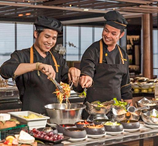 Enjoy the largest selection of included premium international beverages on the Mekong. Let your skilled mixologists create fabulous cocktails and mocktails, and for an infusion of goodness, visit the breakfast juice bar.