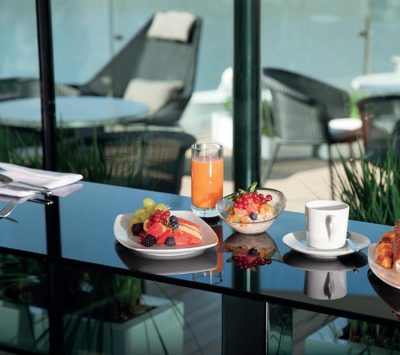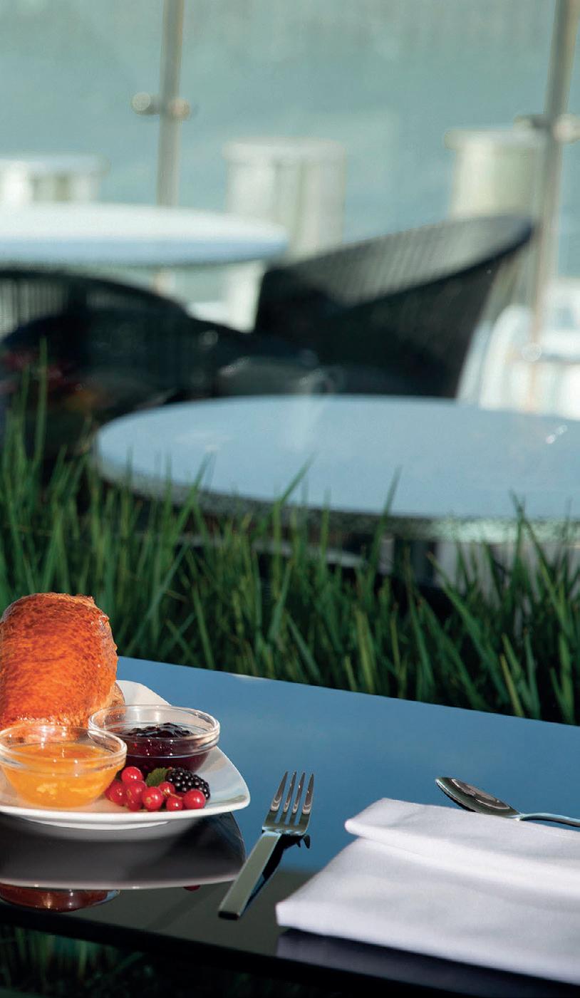 This indoor and outdoor space is separated by floor-to-ceiling glass windows. Take full advantage of the passing views as you enjoy a light breakfast or lunch.