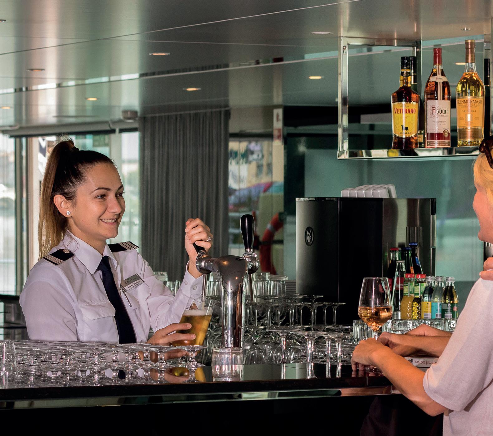 On board Emerald Harmony, you’ll be warmly welcomed into our Horizon Bar & Lounge by our talented bartenders, enjoying the best local and international beers, wines and spirits, including a tantalising cinnamon-flavoured whisky. Our cocktails and mocktails are infused with local flavours such as lemongrass and tamarind to awaken the tastes of Asia - not forgetting the delightful selection of complimentary teas and coffees available throughout the day.