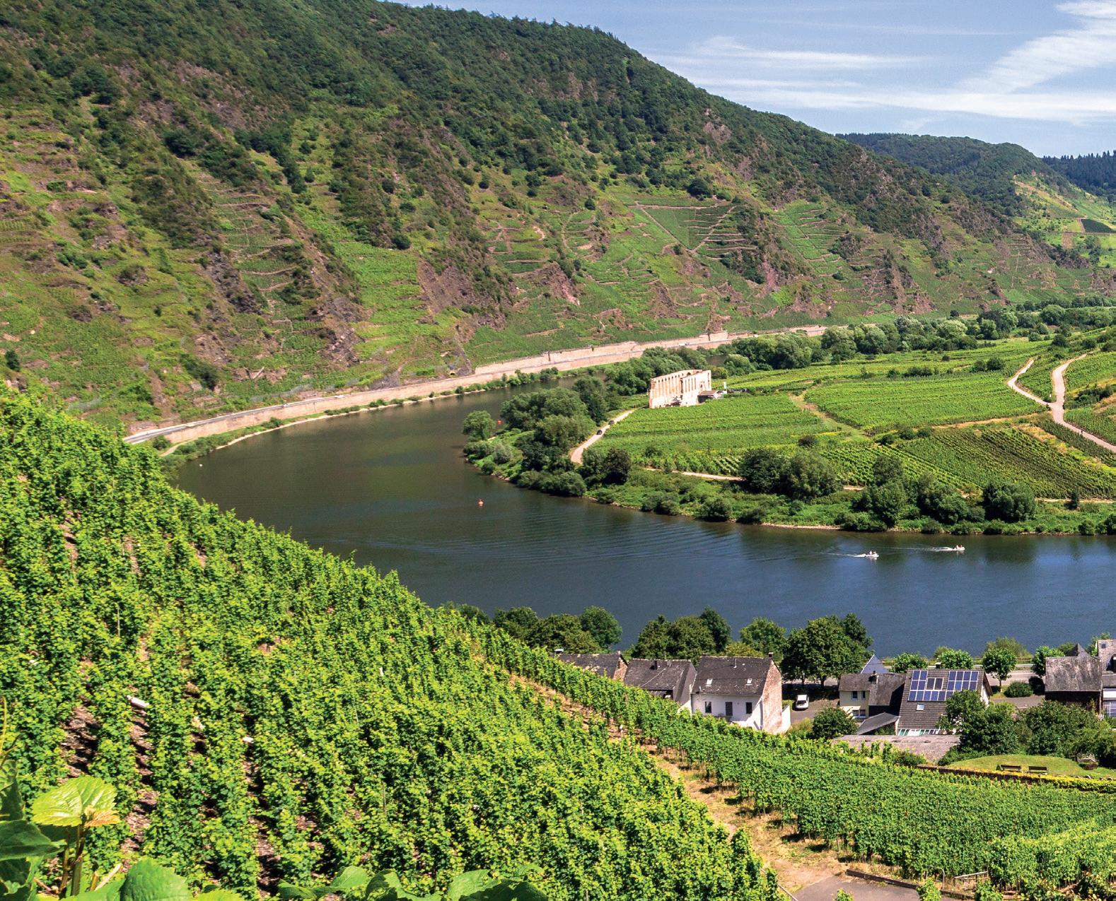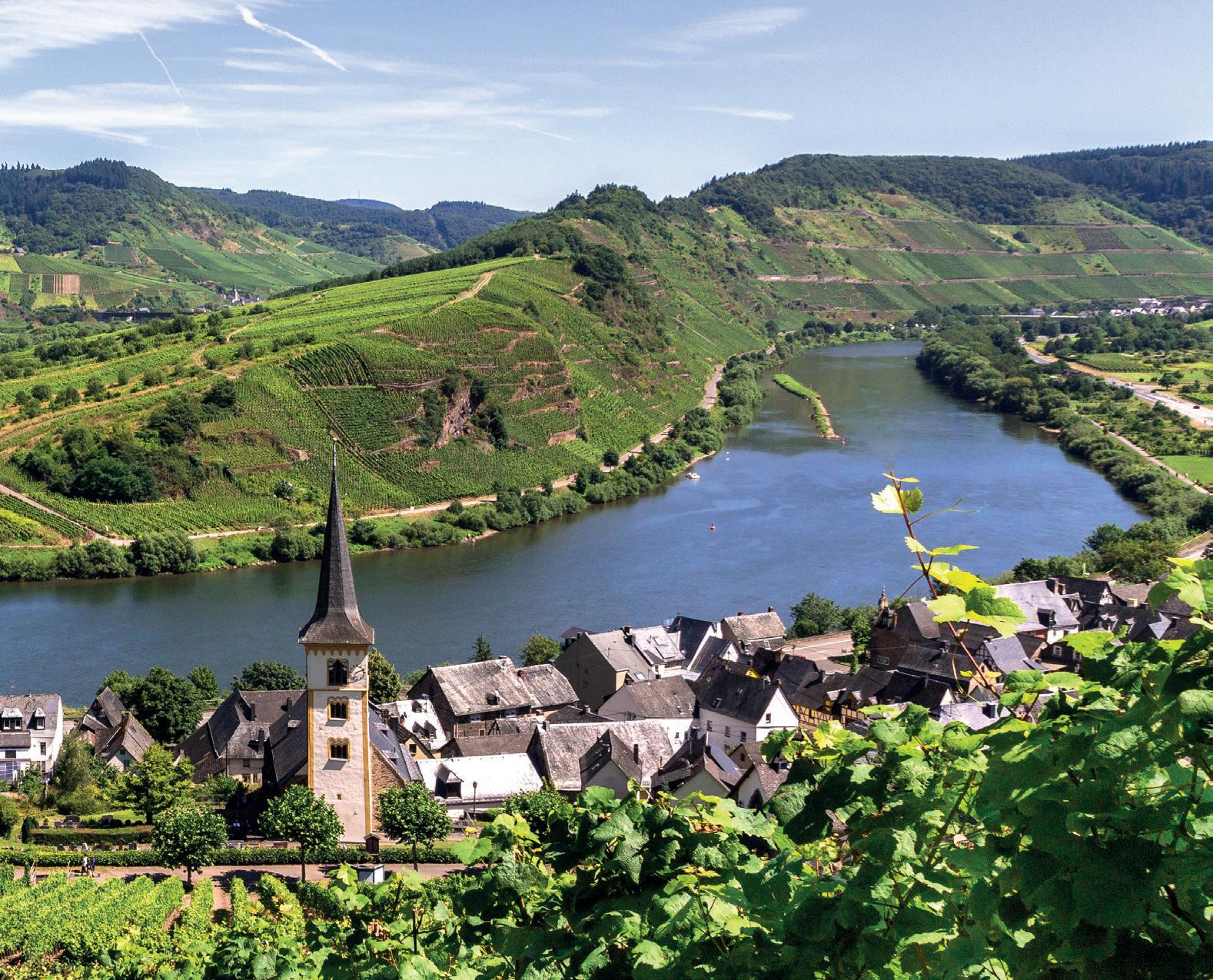 The Moselle rises on the forested slopes of the Vosges massif. Passing through western Germany, the river weaves its way through the spectacular historic architecture of fortifications and castles, charming riverside villages, and some of Germany’s best-loved vineyards.