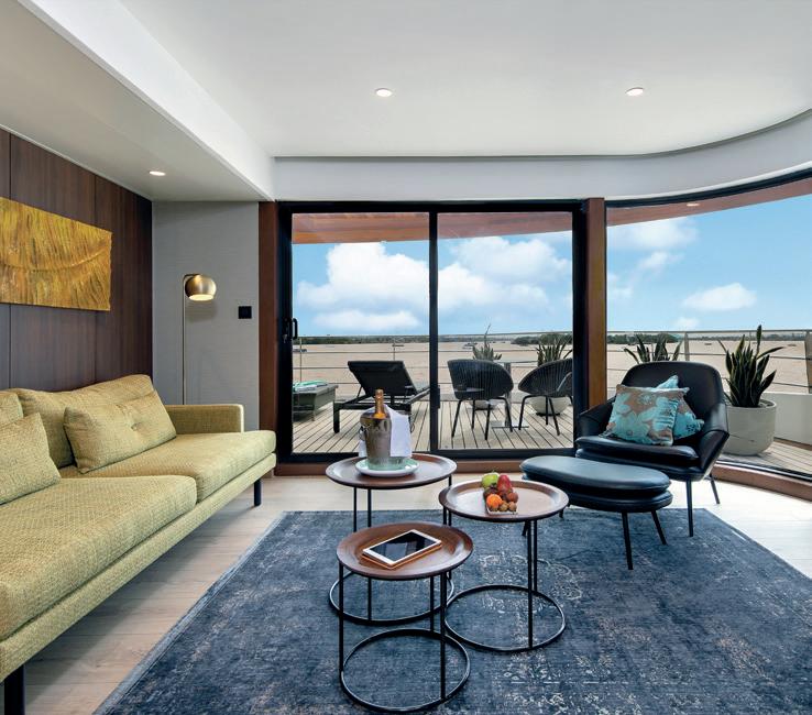Located on both the Horizon and Vista Decks, these spacious and chic suites boast an all-weather indoor balcony with floor-to-ceiling windows and wooden decking. Enjoy the views, drink in hand, and at the touch of a button, the top half of the window will drop down to welcome the revitalising light river breeze.