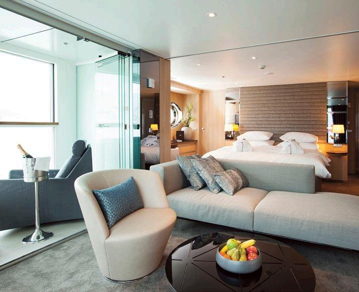 Spacious Suites with balcony, Scenic Sun Lounges± and butler service