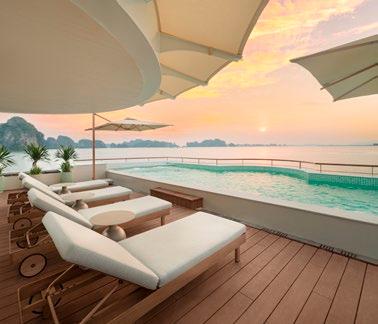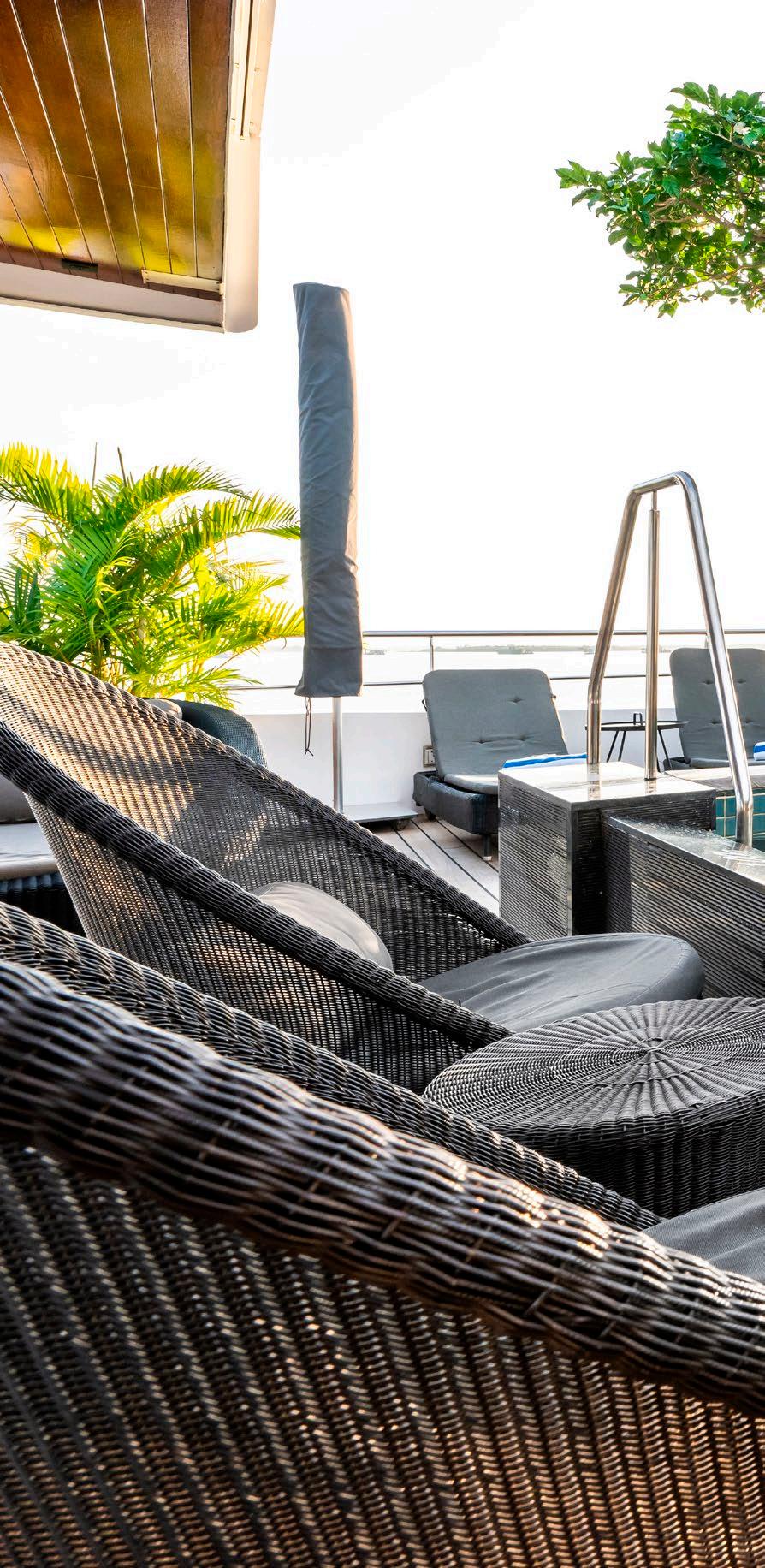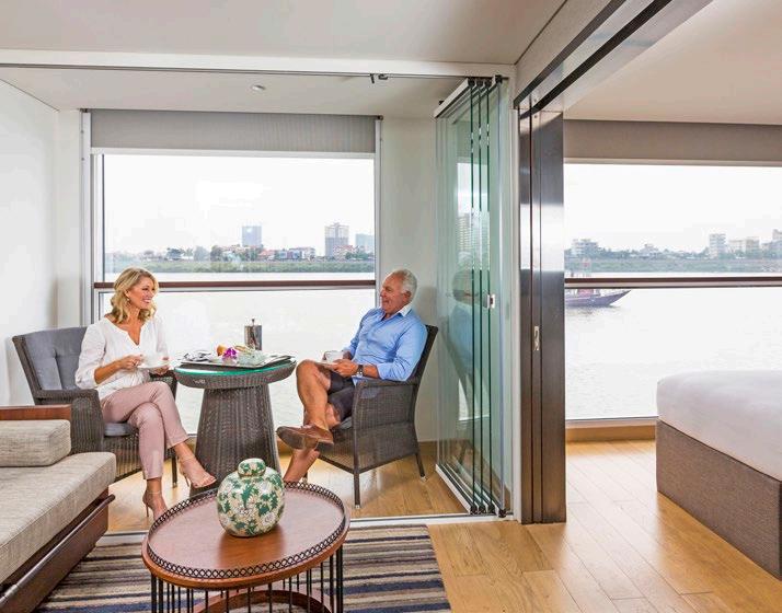 Featuring the largest lead-in suites on the Mekong, all suites on Scenic Spirit are one-bedroom balcony suites with separate living room, walk-in wardrobe and Scenic Sun Lounge. With a mini-bar restocked daily, luxury queen-sized Scenic Slumber Bed, and personalised butler service, you’re assured an exceptional experience in every suite. Enjoy nightly turndown service with gifts, complimentary Wi-Fi, in-suite safes and selfservice laundry facilities. Diamond Deck suites also include special privileges as detailed.