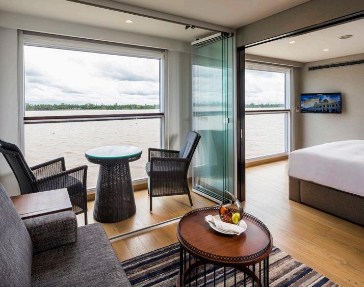 After an exciting day exploring the mighty Mekong River, return to your personal retreat. Each spacious suite features the finest luxury amenities and butler service. Relax and be immersed in the diverse scenery along this spectacular waterway.