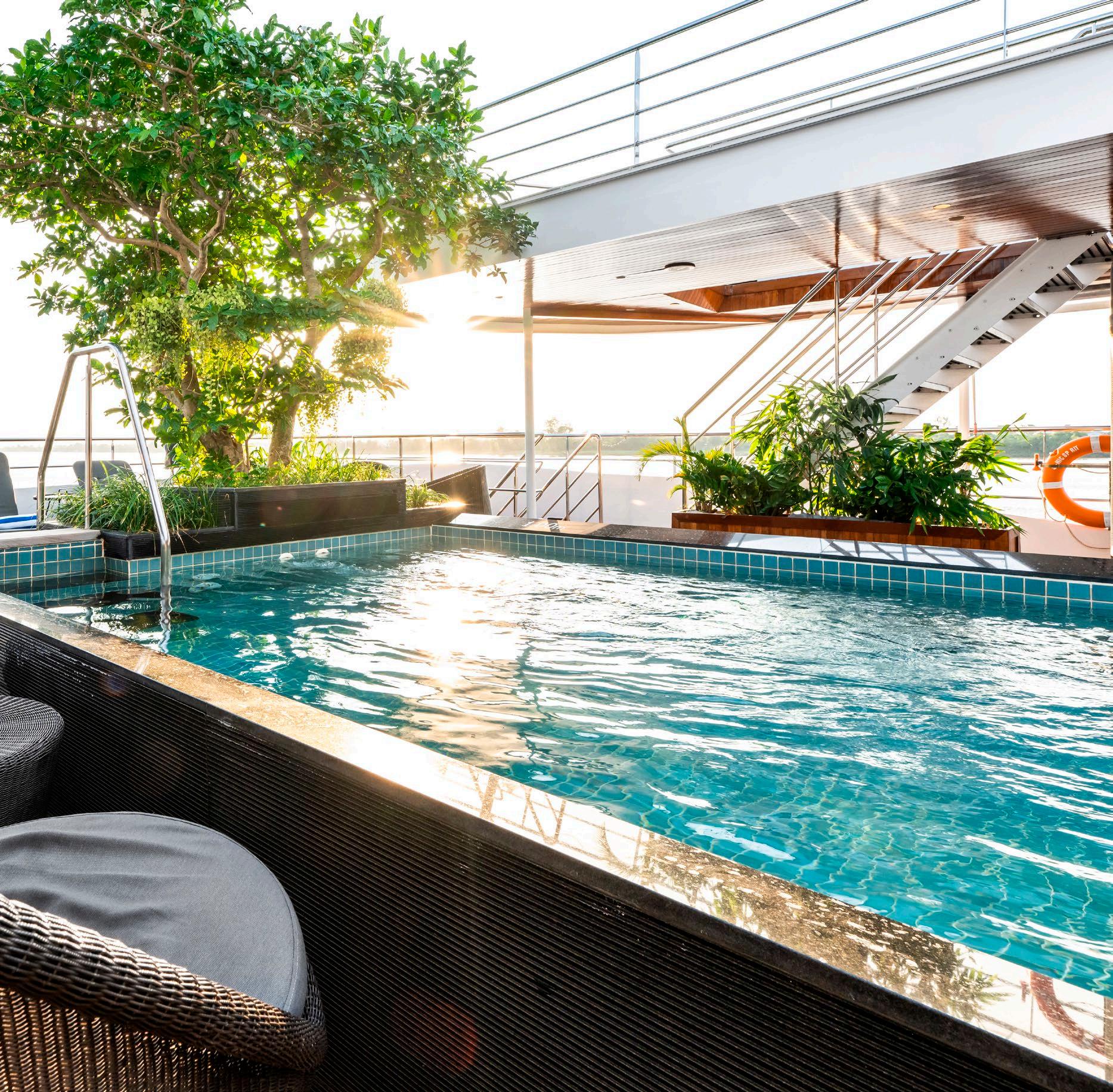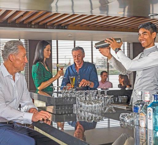 Enjoy the largest selection of included premium international beverages on the Mekong. Let your skilled mixologists create fabulous cocktails and mocktails, and for an infusion of goodness, visit the breakfast juice bar.