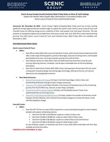 Scenic Group Canada Exclusive Black Friday Sale Press Release