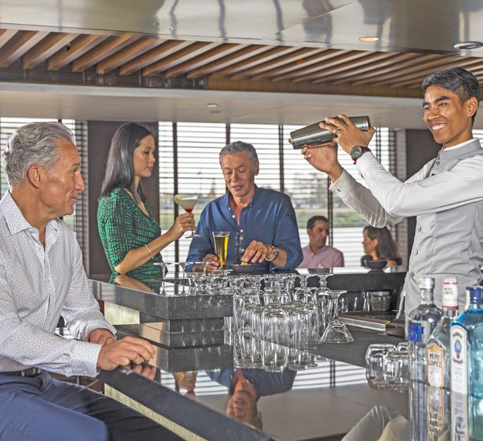 Enjoy the largest selection of included premium international beverages on the Mekong. Let your skilled mixologists create fabulous cocktails and mocktails, and for an infusion of goodness, visit the breakfast juice bar.