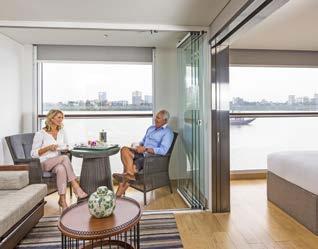The most spacious lead-in suites available on the Mekong River, the 344ft2 Deluxe Suites feature a separate bedroom and lounge area, walk-in wardrobe, Scenic Sun Lounge, elegant furnishings and a pillow menu.