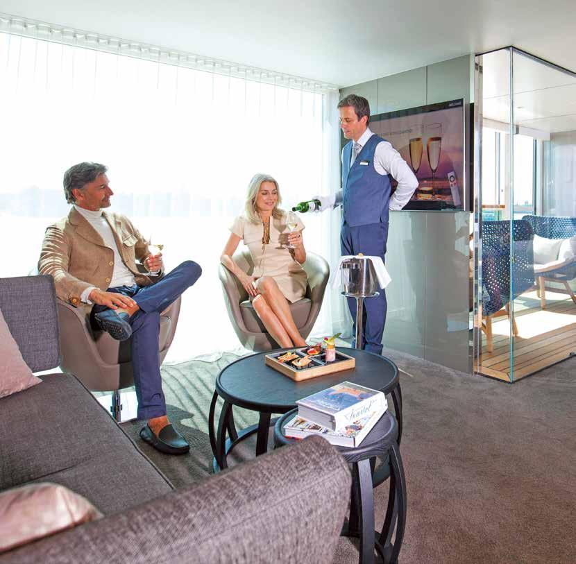 Spacious Suites with balcony, Scenic Sun Lounges± and butler service