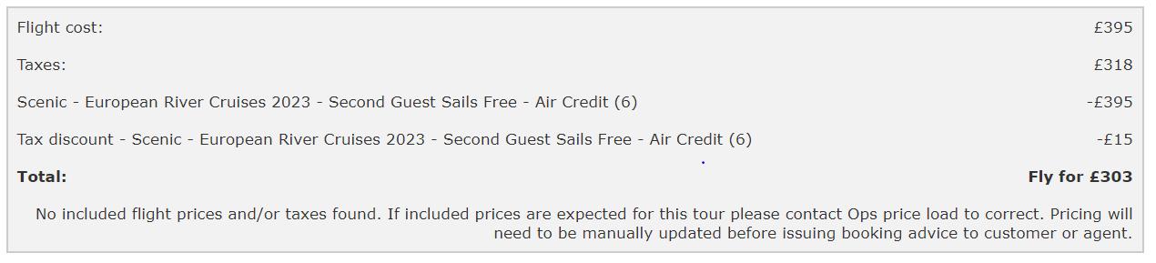 1. Earlybird - cruise only with no flights included - standard payment terms (deposit only required outside 120 days). If your customers would like to pay as per our standard terms, but would still like to book flights through us to make it a package, we can certainly do this using our Earlybird pricing + the full flight cost.