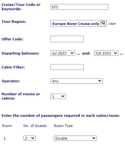 • Enter the number of passengers required in each cabin/room (using drop down)