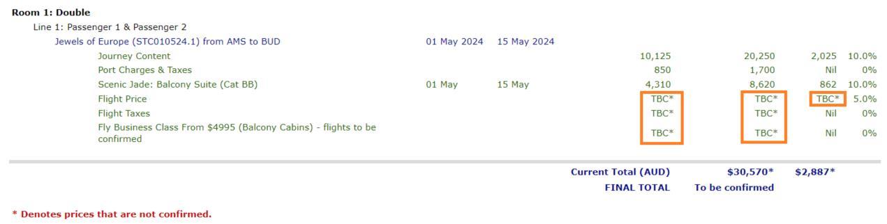 Please see below example of unconfirmed pricing showing as TBC