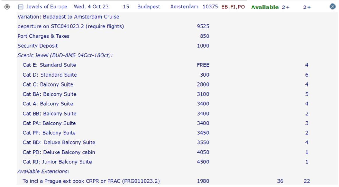 • Available suite or stateroom categories and upgrade price