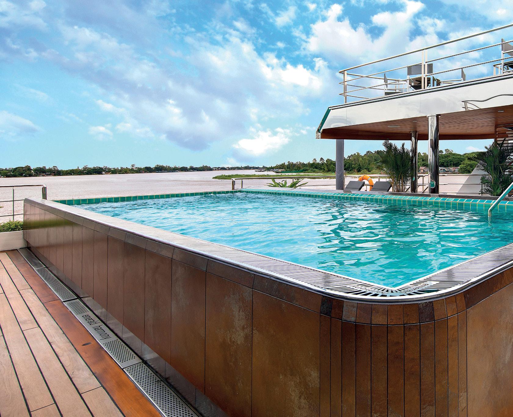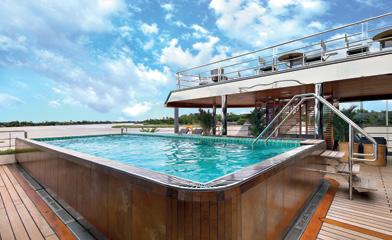 Health and well-being are a priority to us while you sail. Cater to mind, body, and soul and treat yourself to a soothing regionally inspired treatment in our beautiful on board spa, where our wellness experts are on-hand to make you feel reinvigorated. Keep up with your fitness regimen in our modern, well-equipped gym. And simply relax with a refreshing dip in our incredible outdoor pool on the Pool Deck, an elegant wood-furnished space offering swim-up views of the landscape.