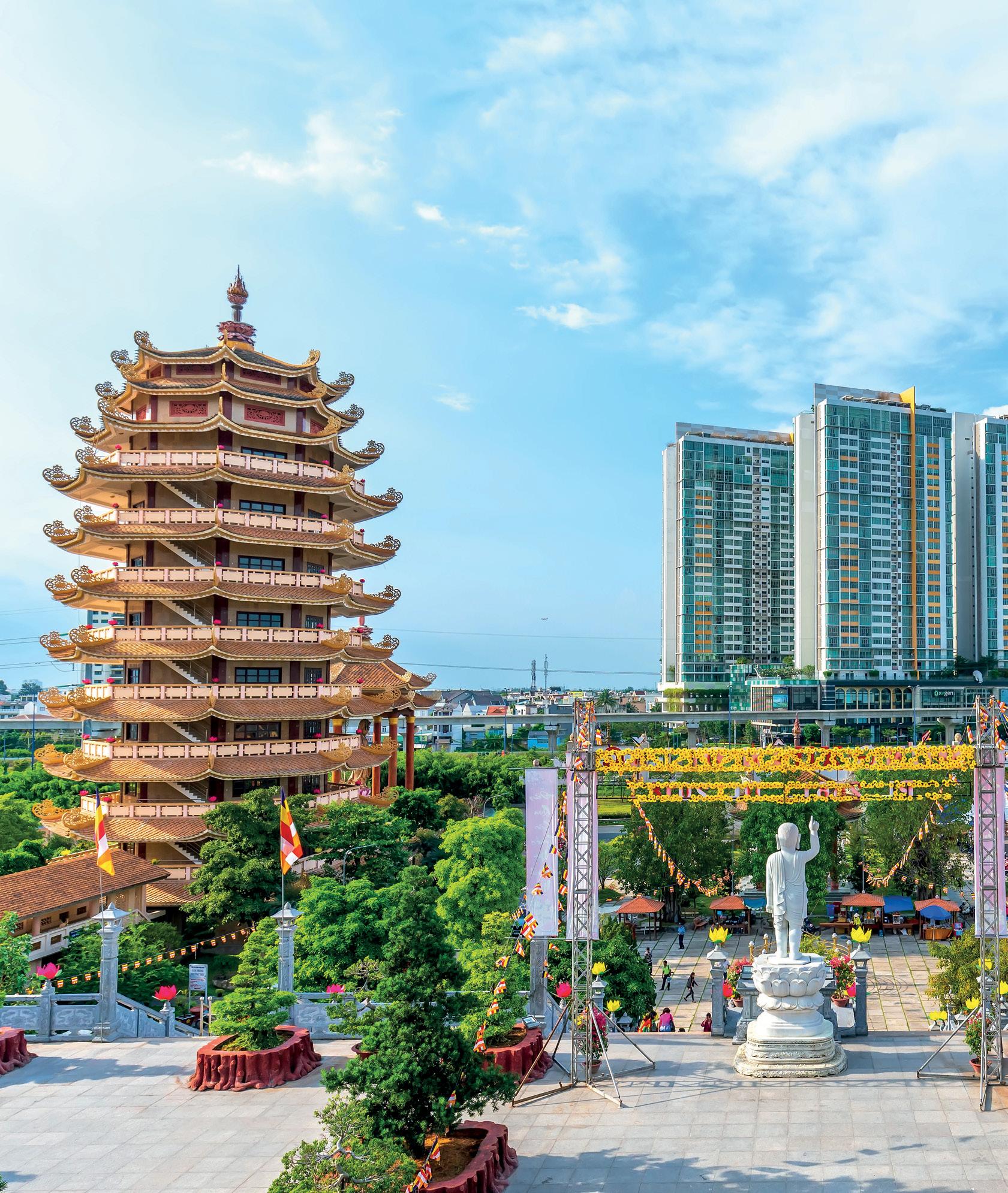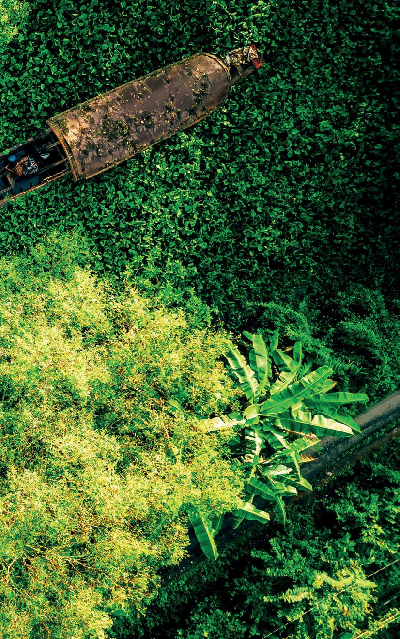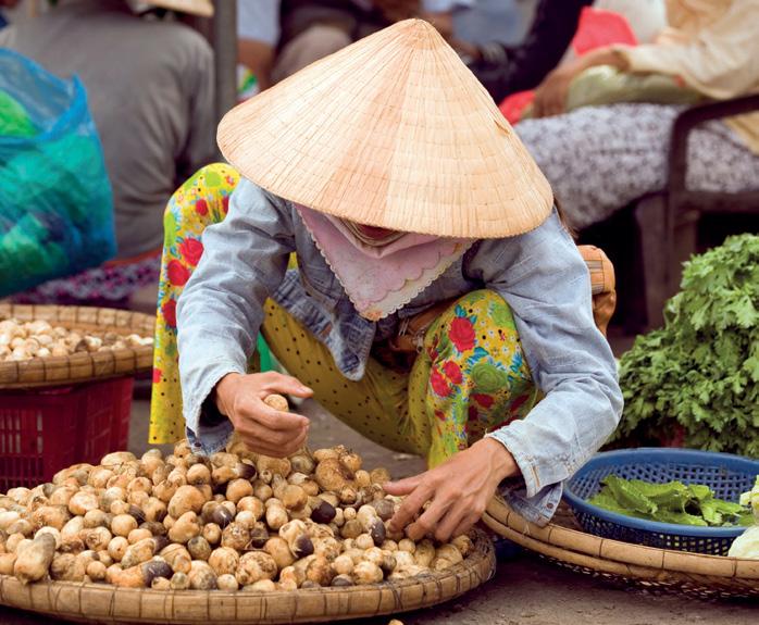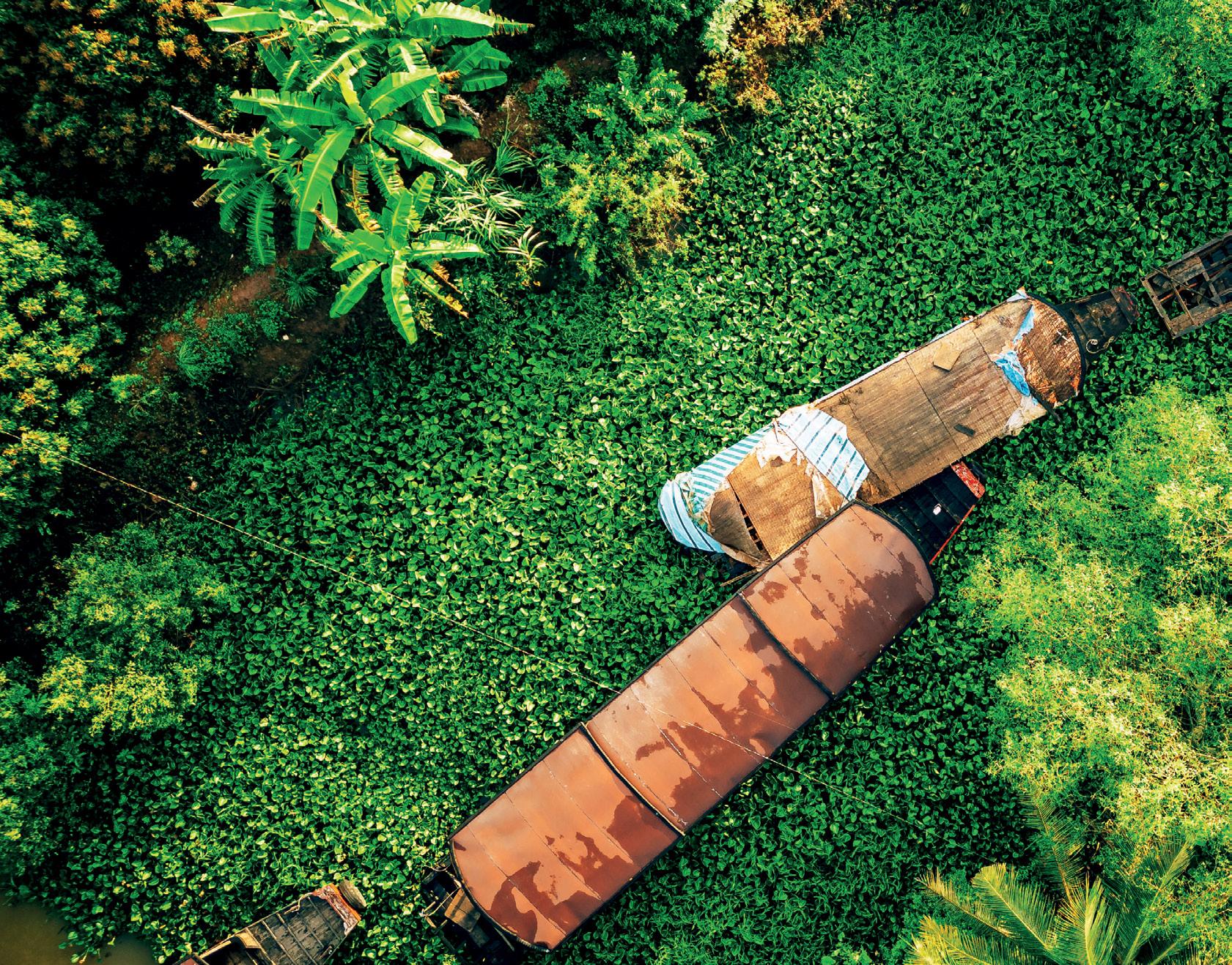 Entering the Mekong Delta, the mountainous uplands dissipate into vast stretches of horizontal paddy fields. Here, agriculturalists rely upon traditional methodology to cultivate rice and sugar cane, herds of the national animal, water buffalo, gather among the wetlands, and intricately detailed pagodas stand testament to the nation’s deeply rooted spiritualism.