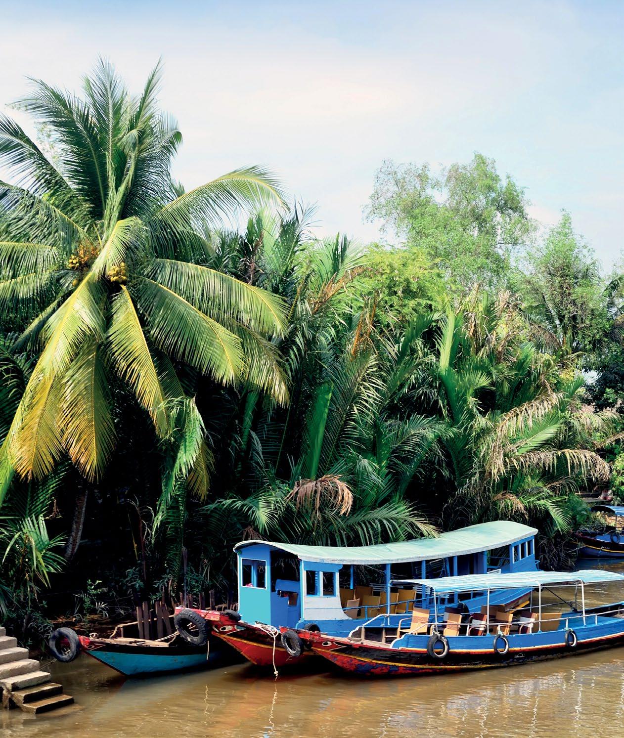 Only by sailing the mighty Mekong River, can one understand its life-sustaining force. The riverbanks are a thriving labyrinth of mangroves, wetlands, and irrigated paddy fields, while the waters teem with aquatic life and the bustle of floating markets.
