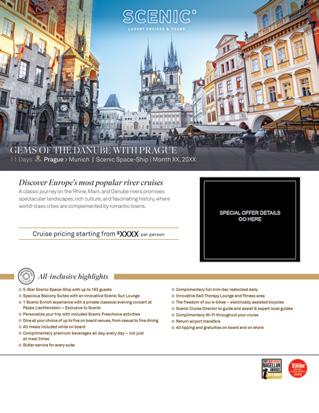 • Truly all-inclusive—Everything is taken care of - from gourmet meals and premium beverages to exclusive Scenic Enrich and Scenic Freechoice excursions.