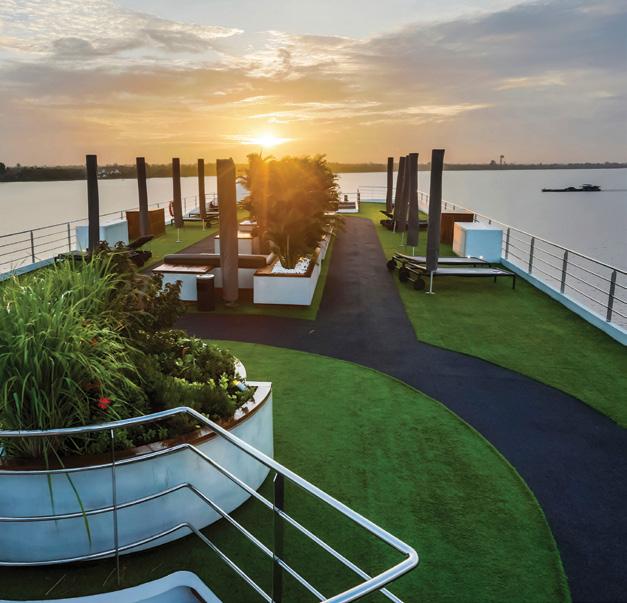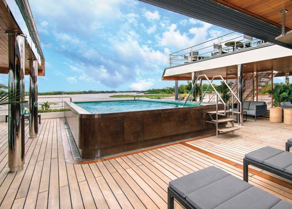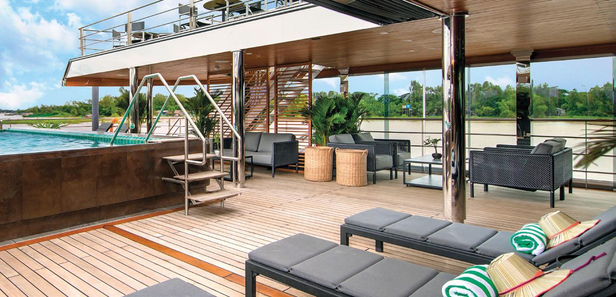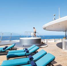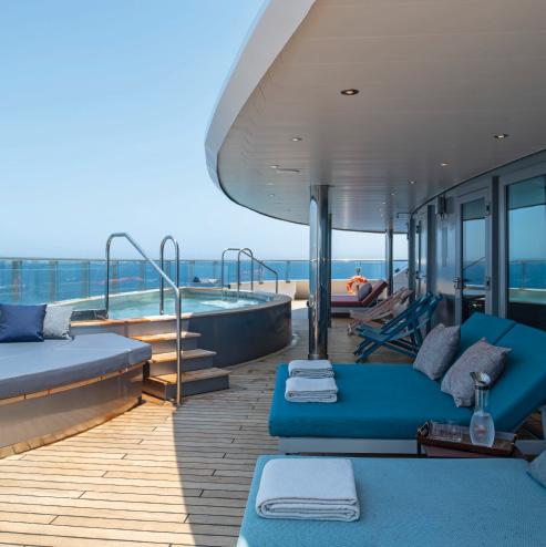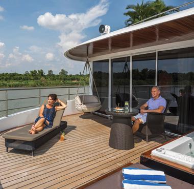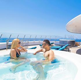 The Sun Deck and Riverview Terrace are the perfect spots for 360° views, exercise on the walking track or a relaxing soak in the Vitality Pool (selected ships).