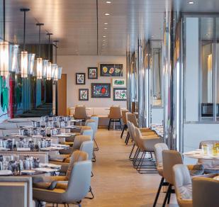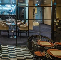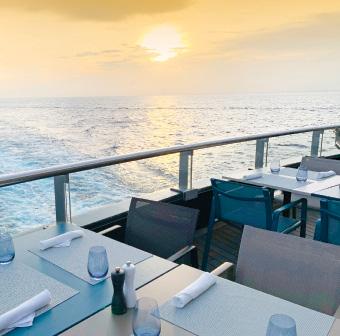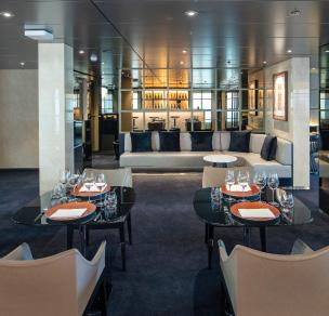 Portobellos*, known as L’Amour* in France, seats up to 34 guests each evening. Guests will receive an invite to dine here once during their cruise. The five-course menu features either Italian, French or Portuguese (depending on your cruise destination) seasonal specialties, paired with elegant wines.