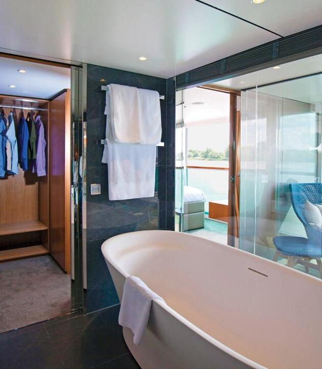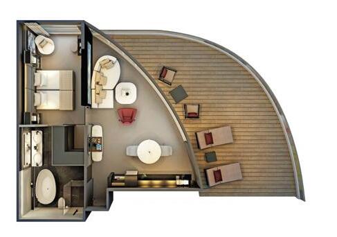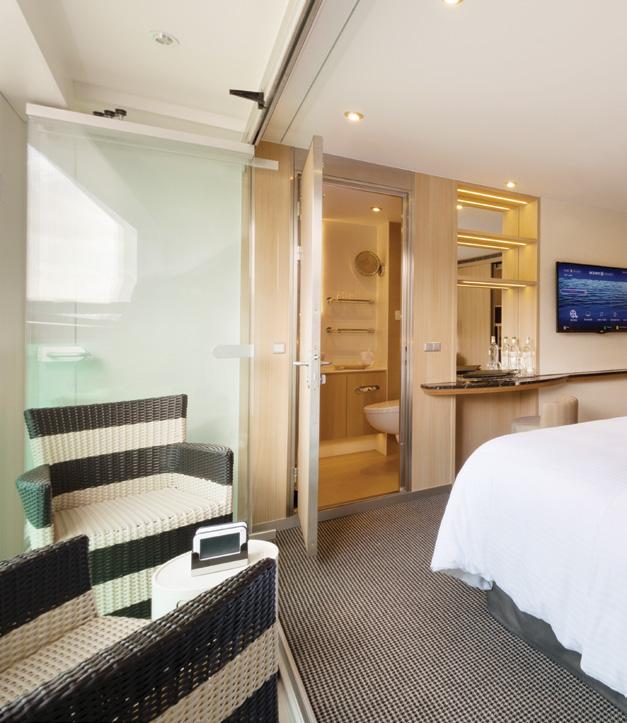 Located on the Sapphire and Diamond Decks, these stylishly decorated suites feature a full-length outdoor balcony with exclusive Scenic Sun Lounge and offer private bathrooms.