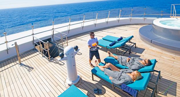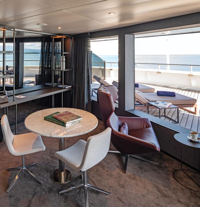 Balcony Suites with Scenic sun lounges. Watch the world glide by from your private Scenic sun lounge.