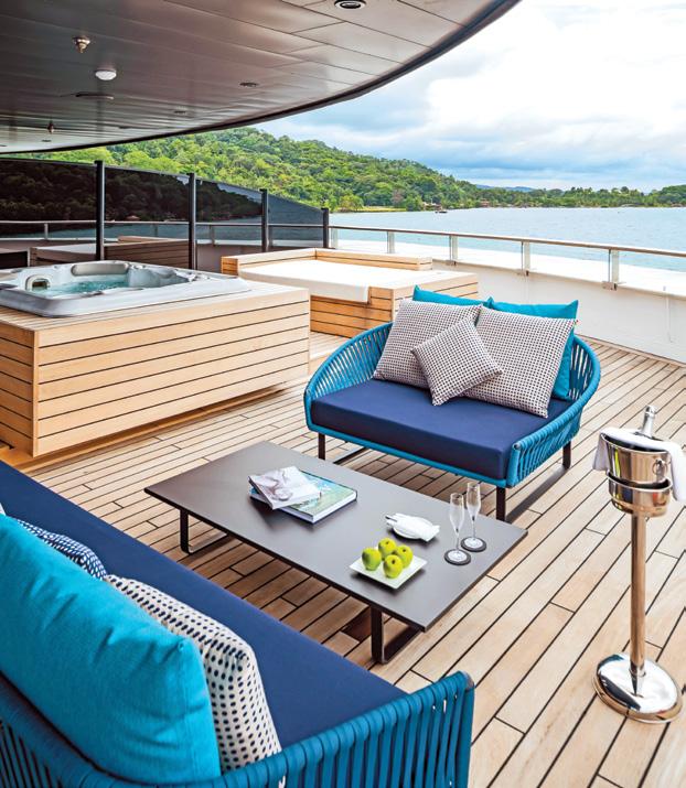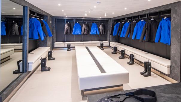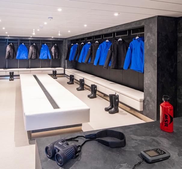 • First expedition yacht to have Dynamic Positioning system (DPS)—created for environmentally sensitive area where dropping anchor could damage delicate ecosystems.