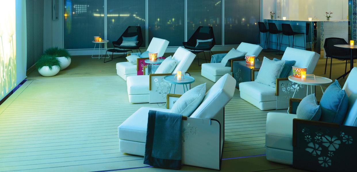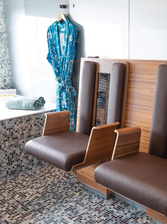 Guests can unwind or stay fit in the wellness area with massages^, modern gym and the exclusive Salt Therapy Lounge (on select Space-Ships).