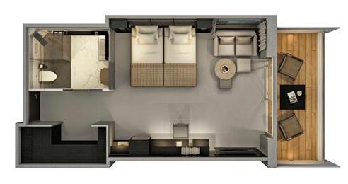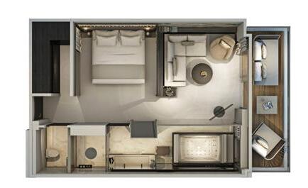 From 305 sq. ft. to 520 sq. ft. (28 sq. m. to 48 sq. m.)