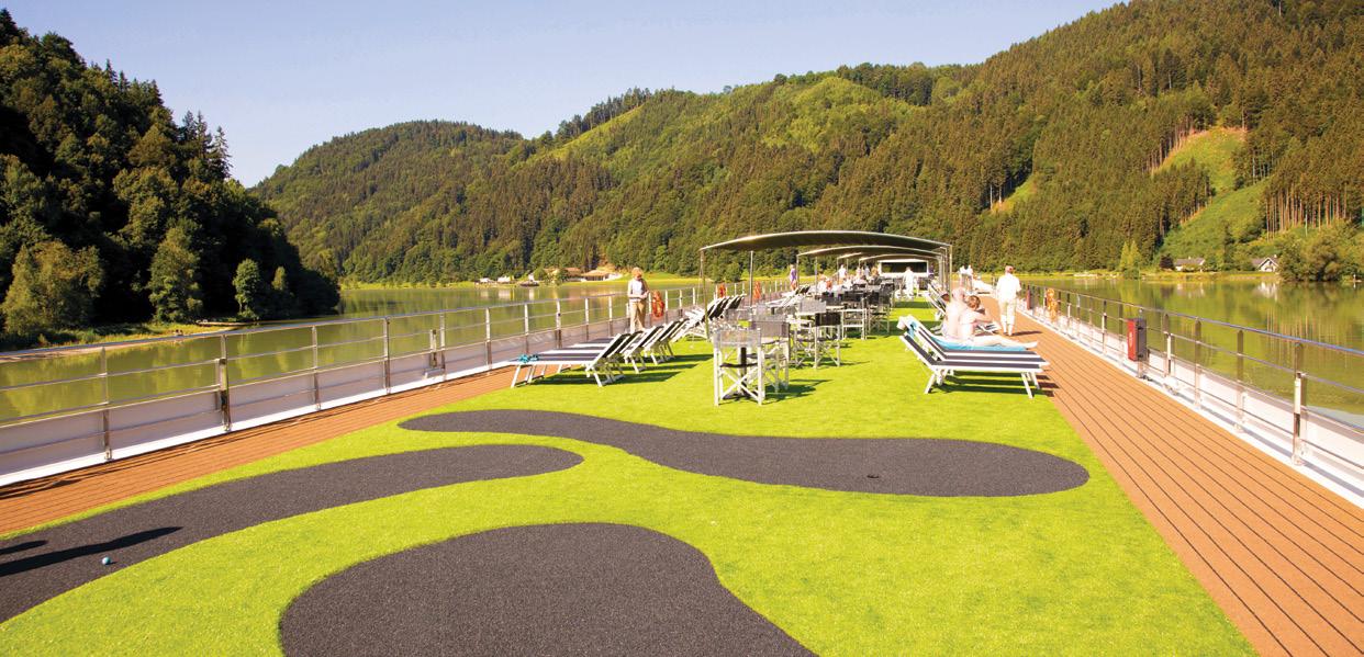 On Scenic Space-Ships in Europe, guests can head to the expansive, multi-purpose Sun Deck for 360° views of the stunning scenery rolling by while exercising on the walking track, taking a dip in the Vitality Pool*, or enjoying a barbeque.