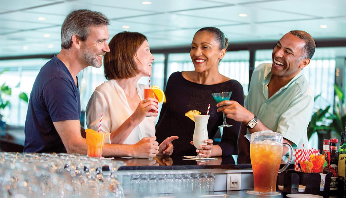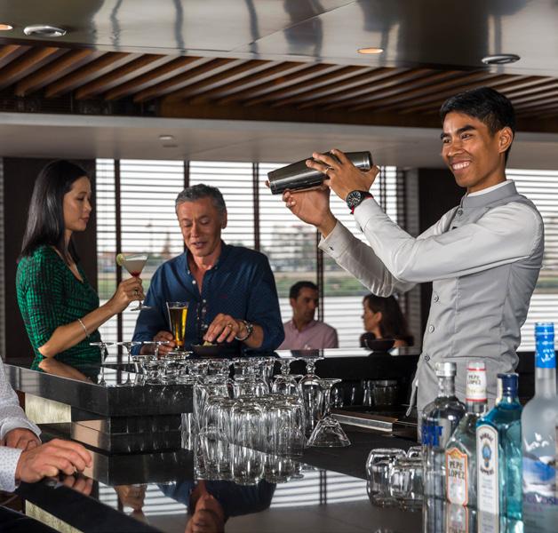 Guests can take a seat in the heart of the ship and enjoy a drink with friends old and new. Choose from fine regional wines and beers, spirits, cocktails, mocktails and specialty teas and coffee.