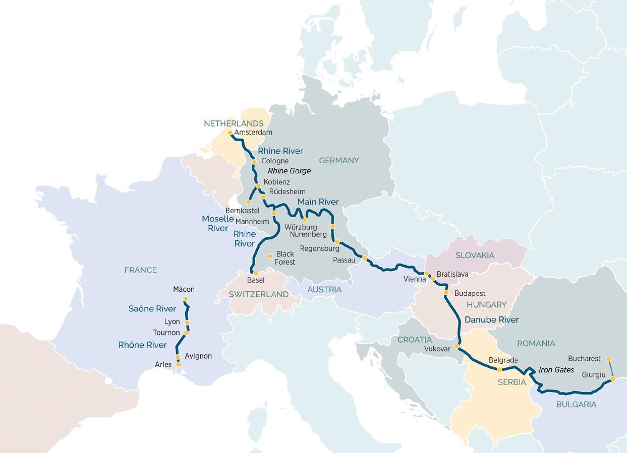 Rhine, Danube, Main, Moselle, Seine, Rhône, Saône, Douro and Nile