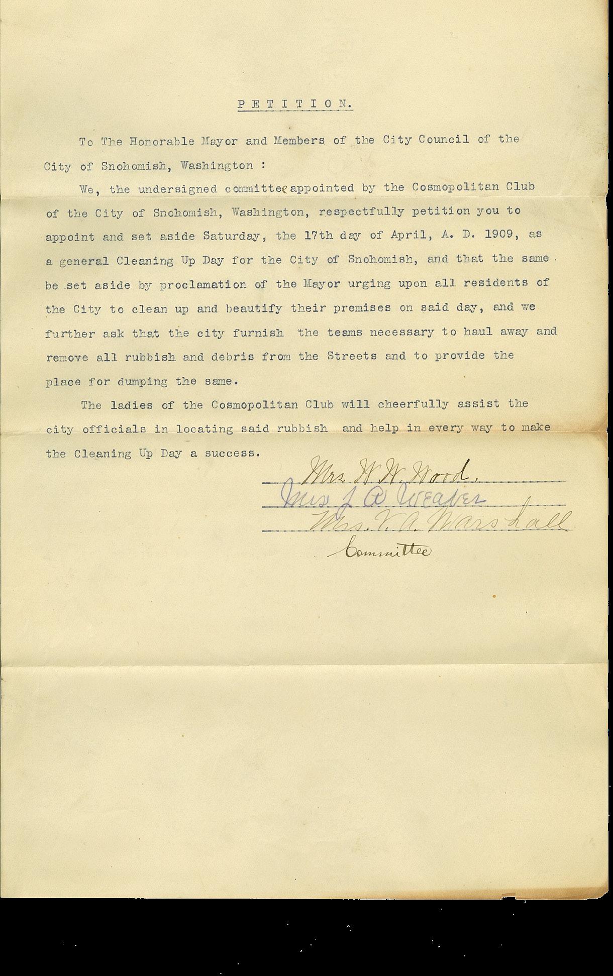 In this issue, we have a petition to the mayor for a “Cleaning Up Day” from the ladies of the Cosmopolitan Club in 1909, a letter from Andrew Carnegie’s secretary regarding the City’s library (also from 1909) and a Public Dance License from the 1940’s.