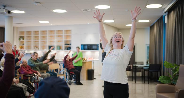 Jarmo Nykyri har arbetat med sång och rörelse på boenden i 25 års tid. Vid önskemål sjunger och talar han också på finska.