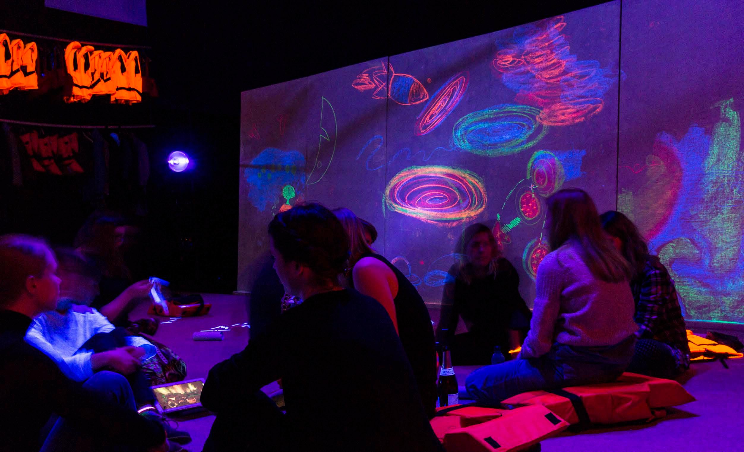 “Escape the Universe” is an artistic thought experiment, driven by the urge to create a poetic escape room, a space in which science, fantasy and fiction merge and collide. Inside a strictly facilitated open space the audience members meet both performers and each other. They talk, listen, draw, interact and observe as we collectively gather the last pieces of information before the final take-off into our utopian ideas of the future. The performance is an escape, and a genuine attempt to approach this seemingly infinite and incomprehensible organism that is the universe. In a performative celebration of cosmic dimensions, the performers and the audience start to uncover which values mean the most, here and now, in life on earth.