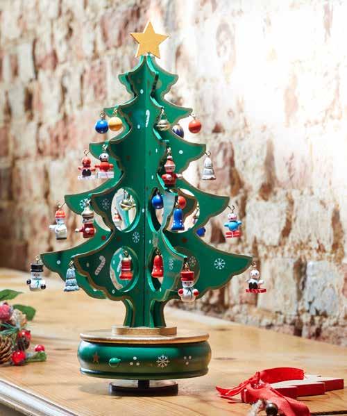 Spin into Christmas with this traditional rotating musical Christmas tree. Each tree comes with 28 hanging decorations, including cute characters, baubles and trees – all hand-painted. It’s finished on top with a classic gold star and ribbon. Push mechanism. Comes boxed. Wood. H32 x W18.5cm. 90817 £19/€22.50