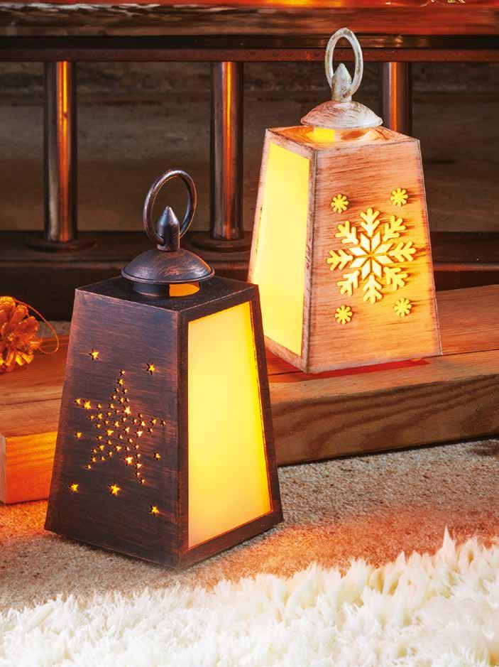 Flickering festive lanterns available in two colours, white with a snowflake cutout and black with a star cutout. Each has a flickering flame effect with cool flame technology, meaning it’s cool to the touch. Hand painted. Suitable for indoor use. Requires 3 x AAA batteries (not included). Plastic & glass. H20.5 x W10cm. WHITE 90828 BLACK 90829 £10/€12 EACH