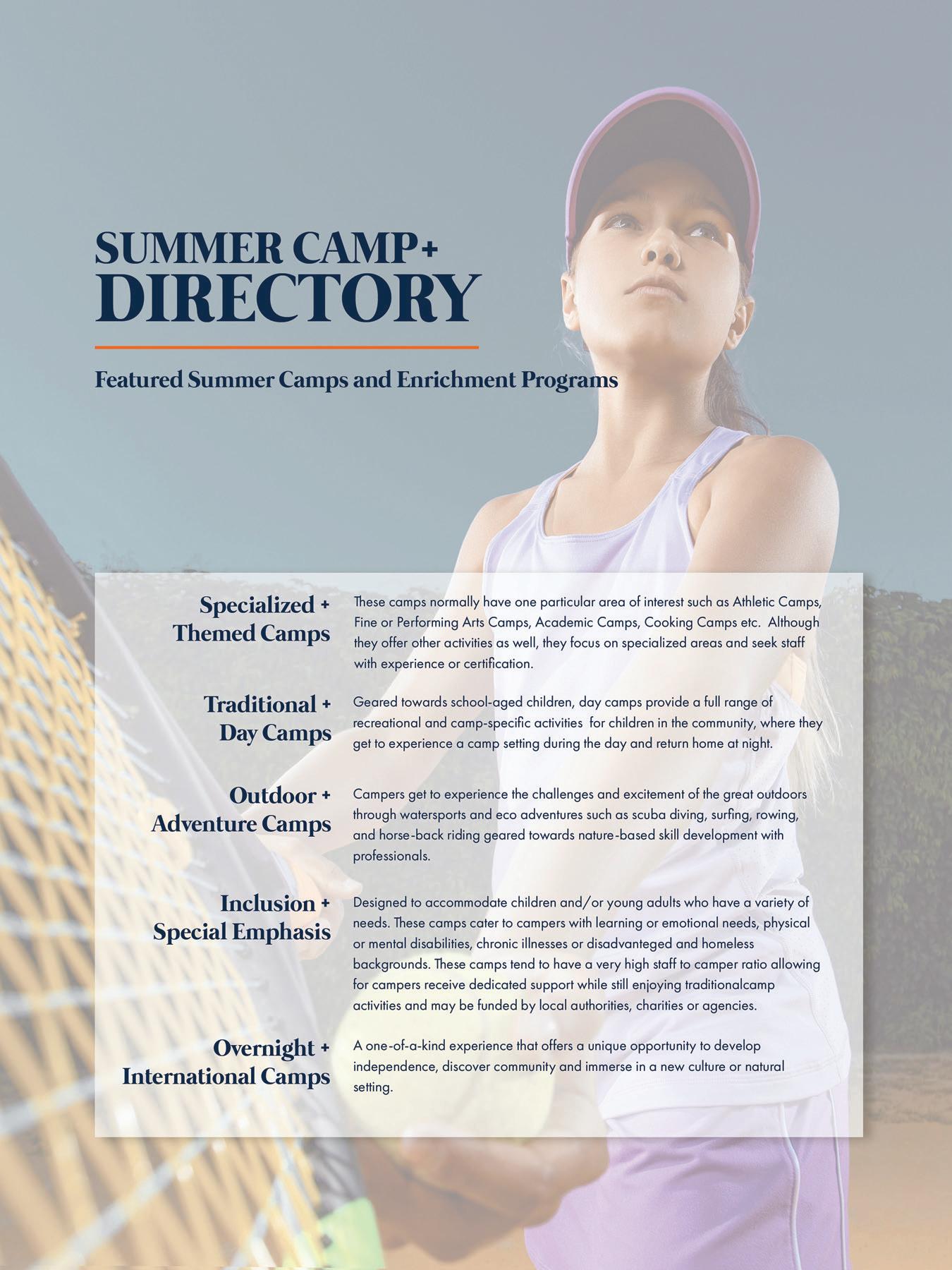 We hope that this issue will guide you to right program to help your child explore passions, discover new interests, learn new skills, and create lifelong memories. Here’s to a summer filled with adventure self-discovery, and learning!