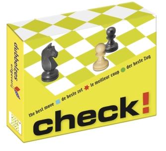 Ook drempelverlagend is een ander kaartspel: Check! Het bestaat uit kaarten met schaakopgaven, die een prima aanvulling