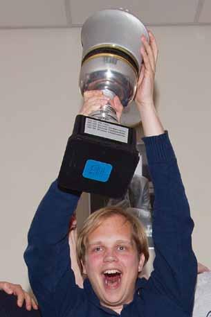 Dit soort foto’s kan natuurlijk aan het eind van elk seizoen worden geplaatst. Er is een kampioenschap te vieren en dat zorgt voor blijheid. Toch was er bij de Schaakclub Woerden reden voor extra vreugde, want voor het eerst in het 71-jarig bestaan van de club werd de stap naar de landelijke competitie gezet. Woerden werd de sterkste club van de Stichts Gooise Schaakbond en promoveerde naar de derde klasse van de KNSB-competitie. Dat bevalt de spelers bijzonder gezien de glimmende oogjes.
