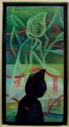 Omdat ik het surrealisme aanhang in de kunst vond ik dit ‘sprookjesschaak’ wel interessant en heb ik in 2009 een schilderij gemaakt met een negental dierfiguren op een zwevend schaakbord.De vlag is van Iran, vroeger bekend als Perzië van waaruit het schaakspel zich verder verspreid heeft over Europa.”