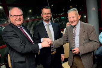 Voor Boudewijn Boogaard was maandag 7 januari een bijzonder dag. Op die dag werd het erelid van DSC uit Delft door de gemeente Delft en de Delftse sportraad in het zonnetje gezet. Hij ontving uit handen van wethouder van Sport en Cultuur Raimond de Prez (midden) en de voorzitter van de Sportraad Jacques van den Berg de Delftse sportspeld.