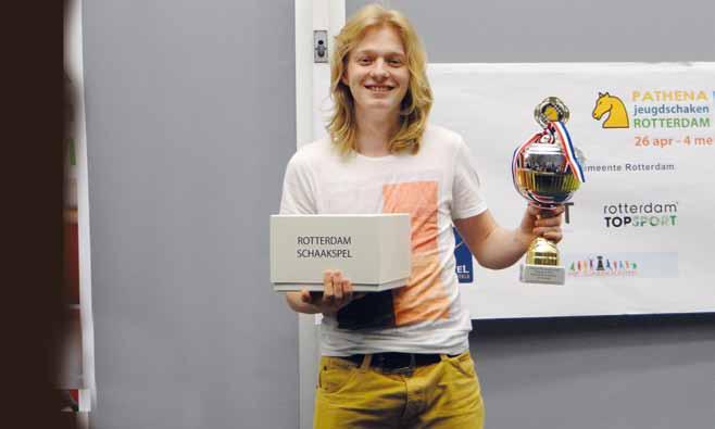 slotronden zou kunnen gaan. Alsof verder in het blad het resultaat niet is te lezen. En alsof de lezer van het bondsblad niet zou weten hoe het toernooi is afgelopen, want Schakend Nederland verschijnt een maand later. Het sterkste schaaktoernooi ooit in Nederland gespeeld betekent de doorbraak van Larsen, die als enige een positief resultaat haalt tegen de Russen. Stein en Bronstein plaatsen zich bij de eerste acht, maar vallen toch af, omdat er slechts drie Russen naar de kandidatenmatches mogen. En we maken een verschijnsel mee dat zich vaker zal voordoen: Fischer meldt zich af. ’Niemand kon ook maar bij benadering een zinnige reden voor dit besluit geven of suggereren’, schrijft het bondsblad. 1964 Is ook het jaar van de 30-zettenregel. De FIDE heeft in haar wijsheid bepaald dat partijen niet voor de 30e zet remise gegeven mogen worden. Het bondsblad schrijft: ‘Voor het toernooi meldden de wedstrijdleiders dat ze deze regel soepel zouden toepassen: herhaling van zetten en eeuwig schaak zouden als “afdoend” motief worden erkend, mits de bedoeling om de strijd te vermijden er niet “dik” bovenop zou liggen. Het is overigens een zotte toestand wanneer men spelers als Bronstein en Gligoric doodernstig ziet en hoort overleggen over de wijze waarop ze tot herhaling van zetten zullen komen!’ Bij al dat internationale geweld valt het nationale nieuws in het niet. ASC uit Amsterdam verovert de landstitel, niet zo vreemd met spelers als Euwe, Prins, Barendregt, Zuidema en Orbaan. Niet veel later fuseren ASC en stadgenoot VAS. Althans, zo wordt het genoemd. In feite gaat ASC in VAS op.