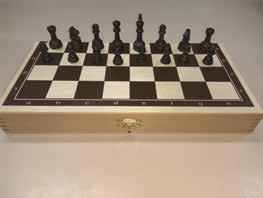 Een handige houten schaakcassette met beukenhouten gebeitste stukken. Stukken zijn individueel op te bergen aan de binnenkant. Velden 45 mm en koningshoogte 73 mm.