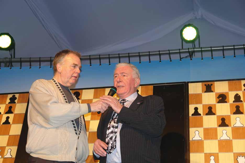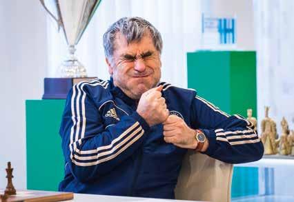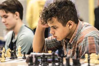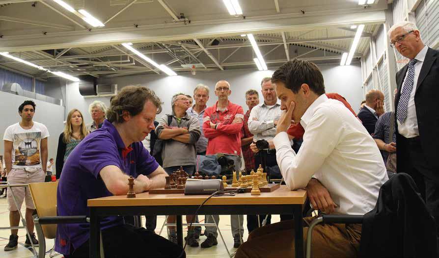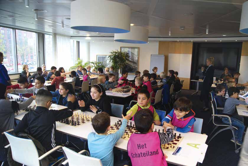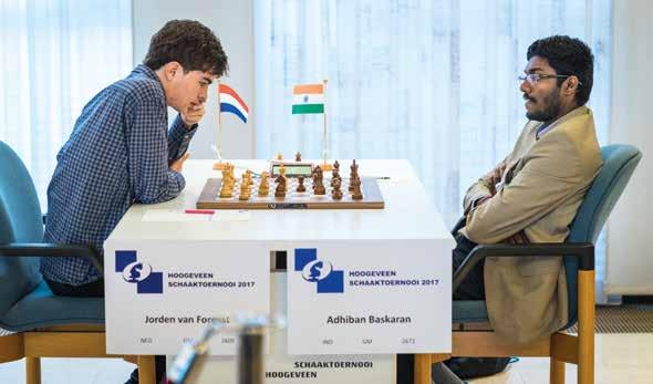zijn geweest als KNSBbestuurslid trad Jan Stomphorst af. Monique van de Griendt sprak met de organisator pur sang die in zijn rol als bestuurslid altijd graag de verbinding zocht met de regio’s. Natuurlijk werd er ook weer gewoon veel geschaakt. Jorden van Foreest greep naast een medaille op het WKjunioren (ondanks een slotserie van 5,5 uit 6!), maar won er wel een op het EKLandenteams bij zijn debuut in de nationale ploeg. Daarvoor wist hij in een match topper Adhiban te verslaan in Hoogeveen. Dat schaken soms ook zeer frustrerend kan zijn blijkt duidelijk uit een door Lennart Ootes geschoten foto aldaar. Wel eens een oneven aantal deelnemers op uw clubavond? Dan heeft Bart Stam een tip voor u: zet ‘Donald Trump’ in voor een avond.