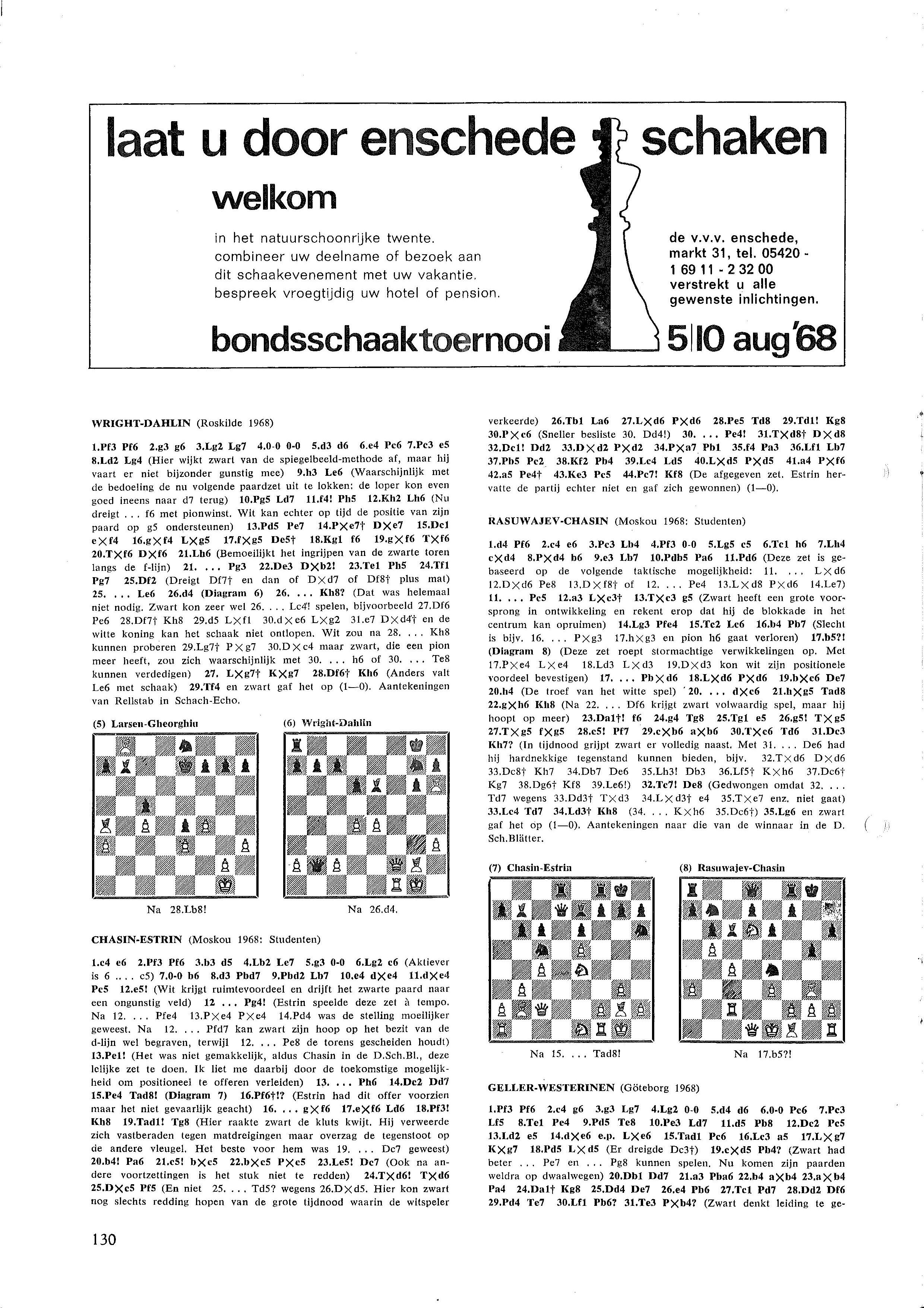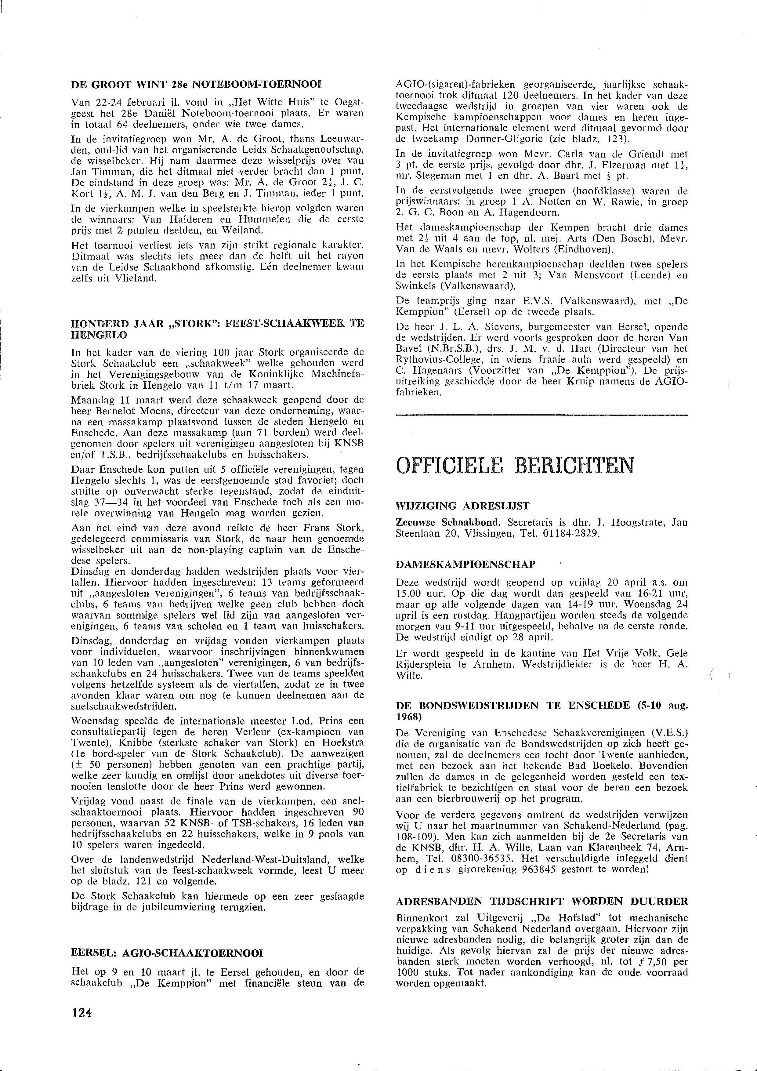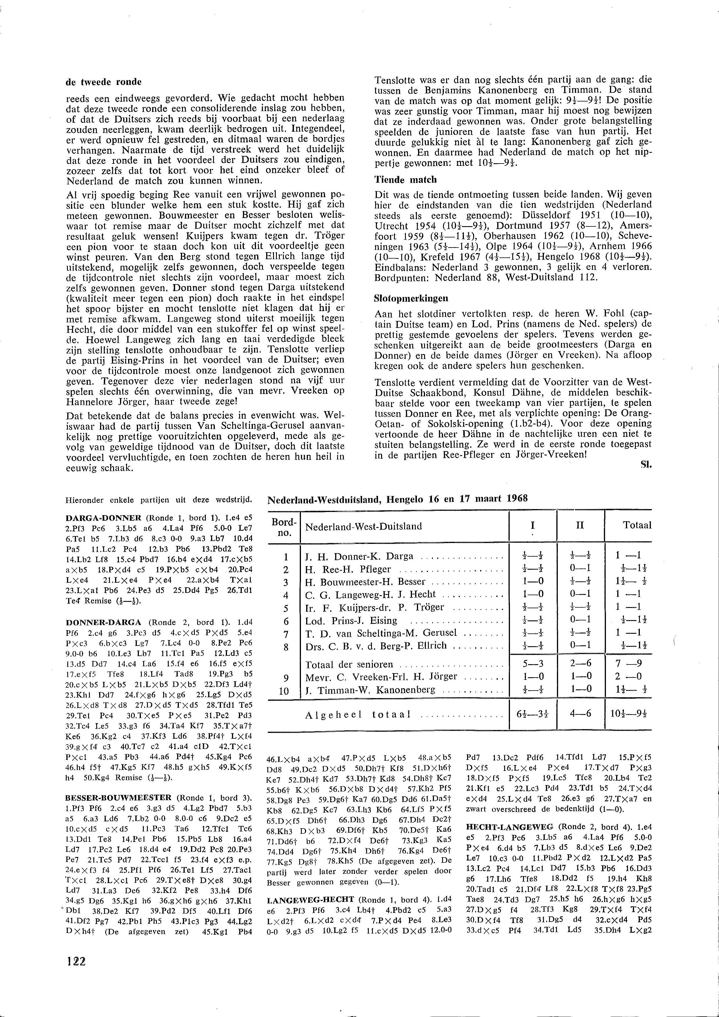 o.a. Nederland klopt West-Duitsland in landenwedstrijd en wist daarmee de ´schande´ van een jaar eerder uit; 6½-3½ winst voor Gligoric in Agio-tweekamp in Eersel tegen Donner; in het kader van 100 jaar Stork organiseerde de Stork Schaakclub een geslaagde schaakweek in Hengelo