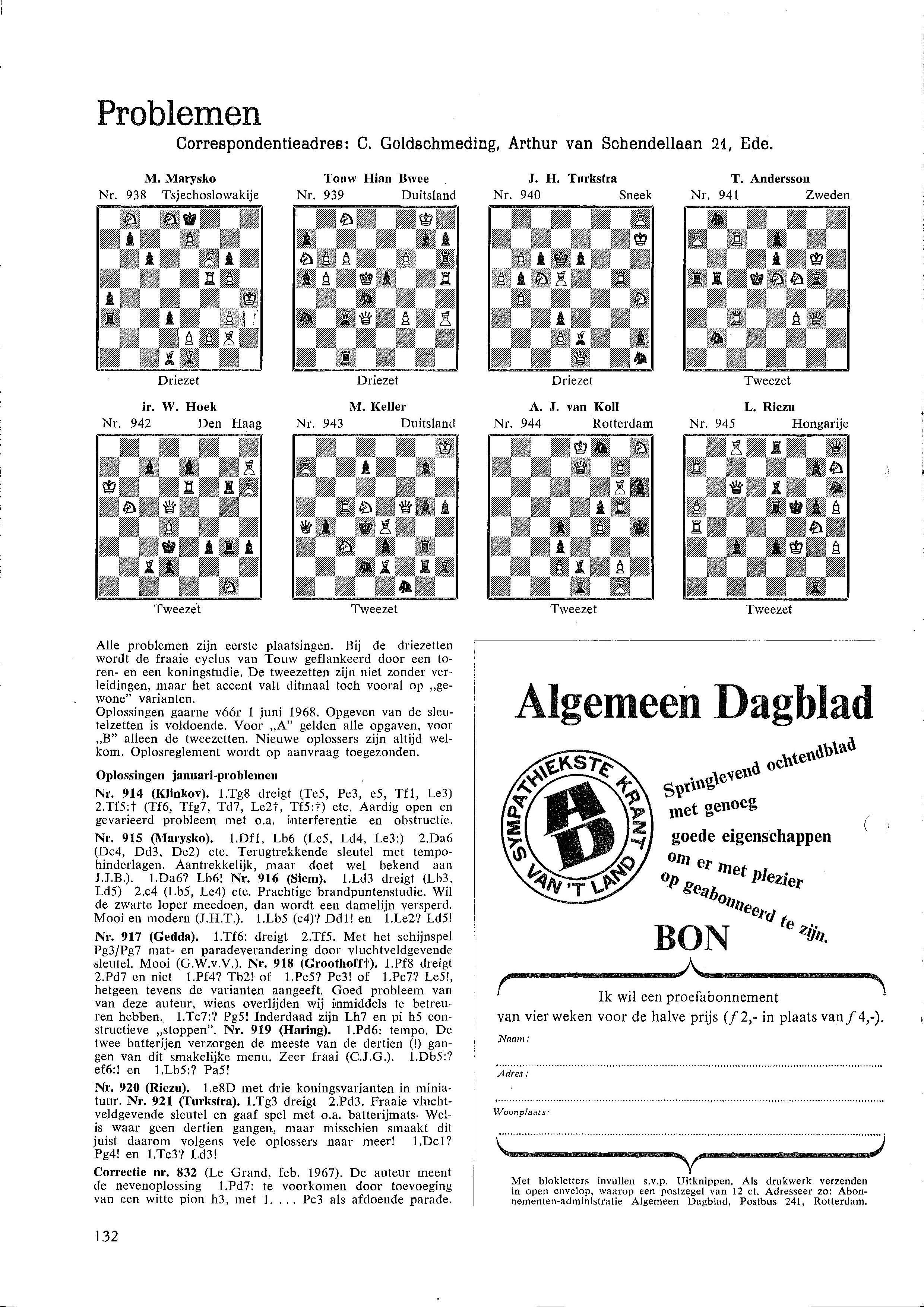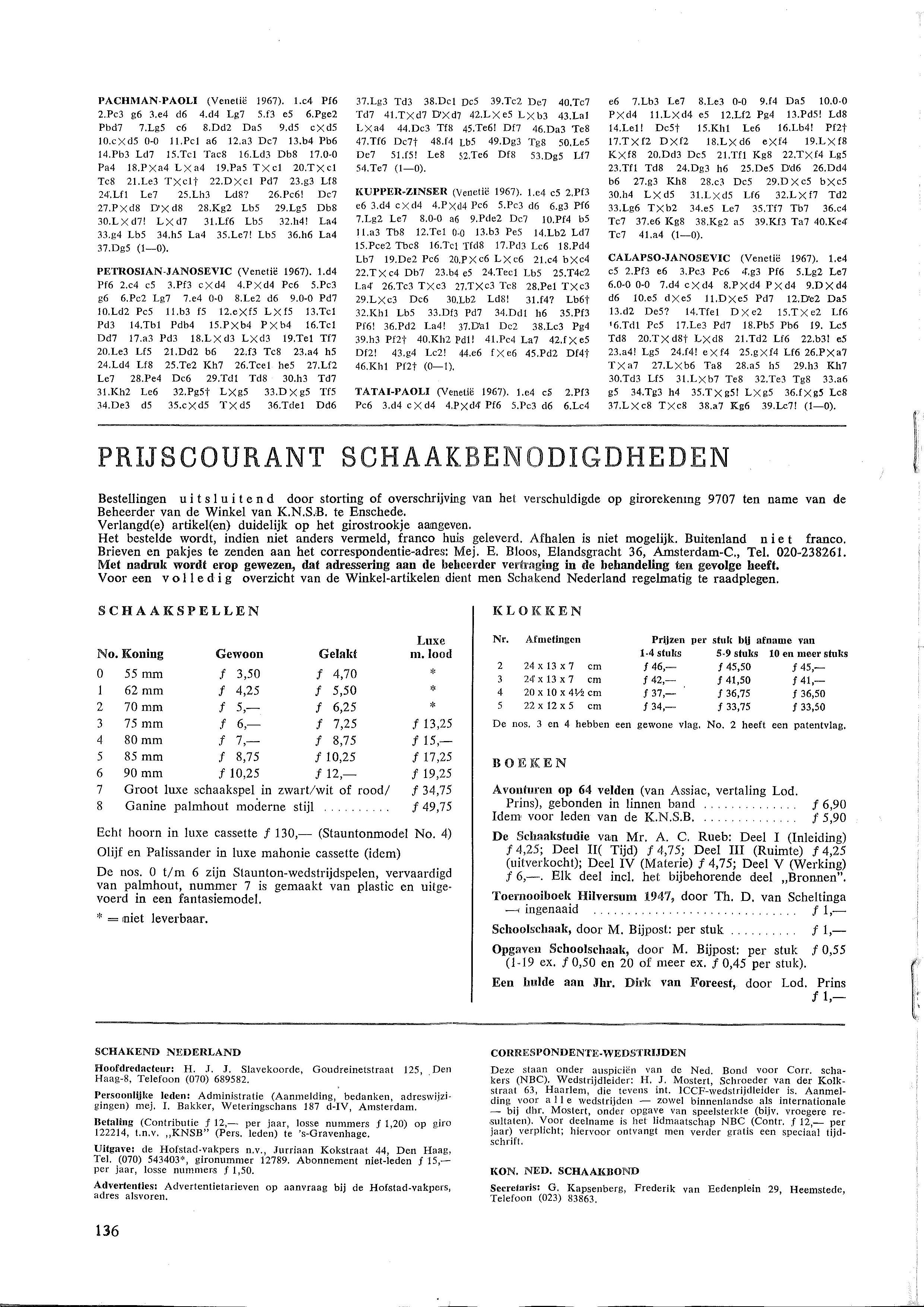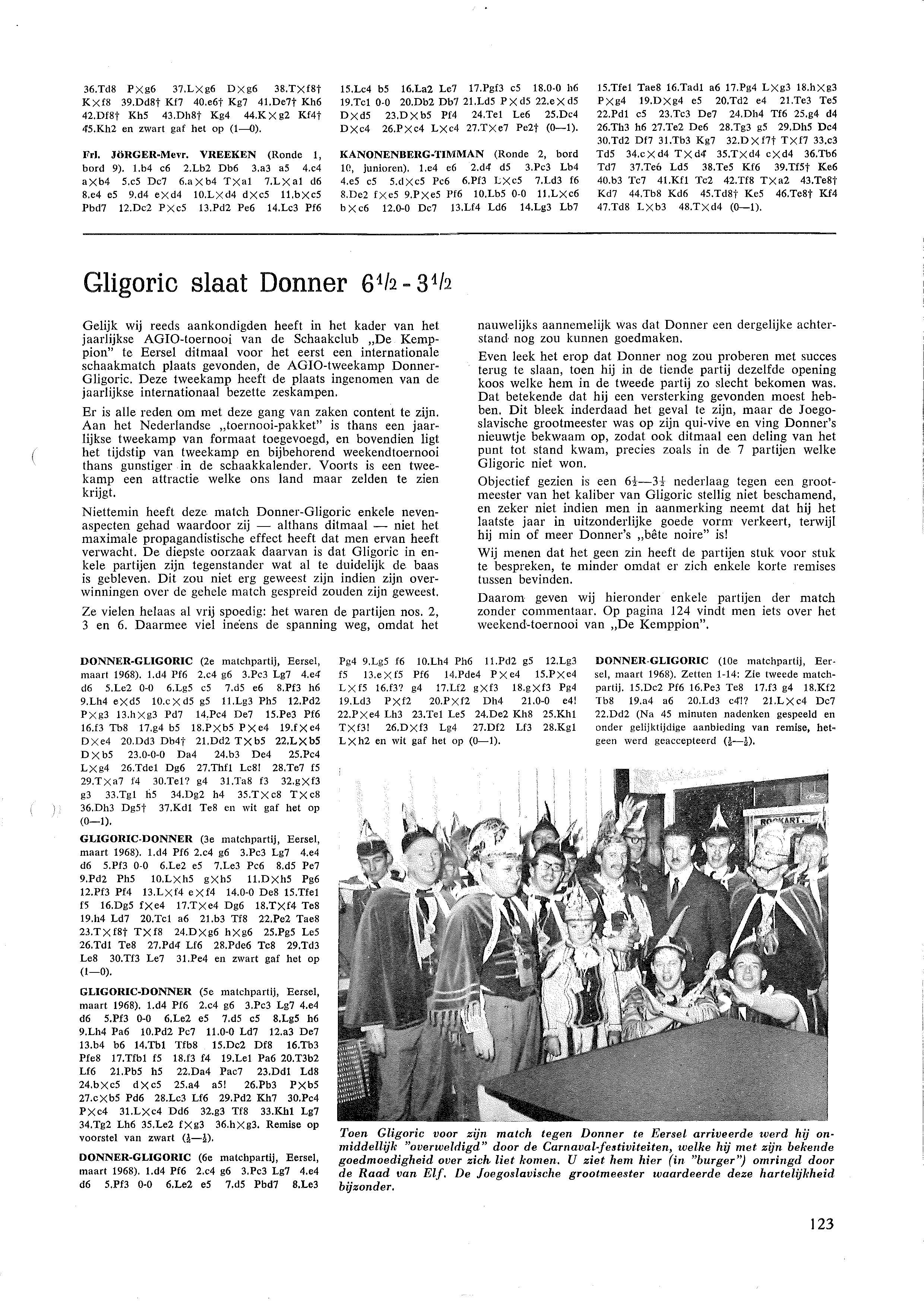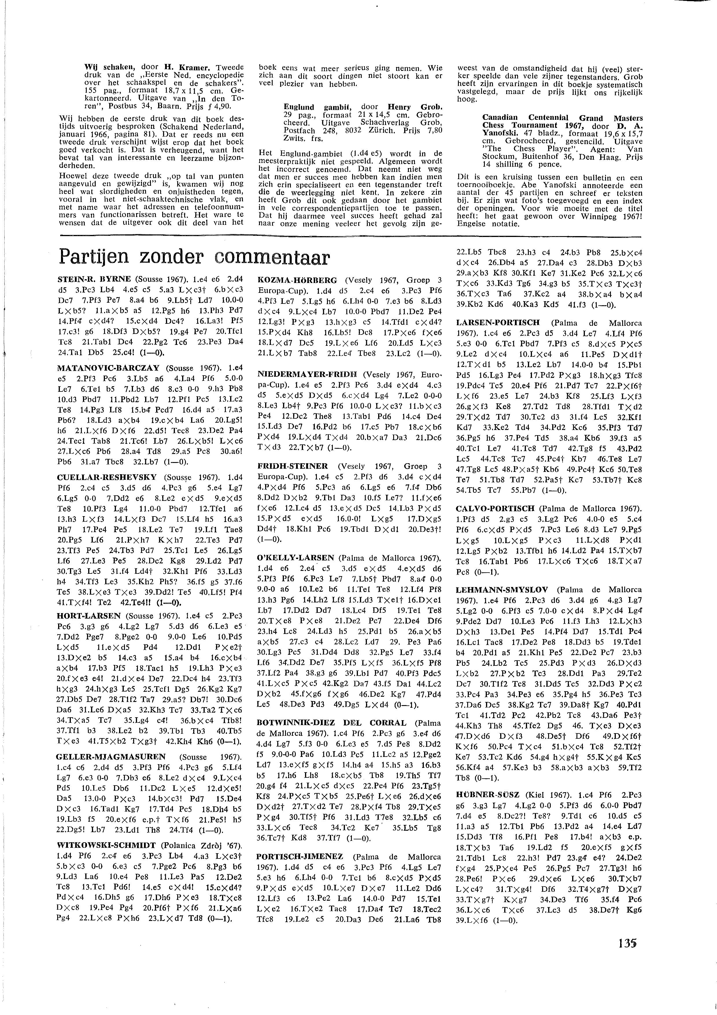 o.a. Nederland klopt West-Duitsland in landenwedstrijd en wist daarmee de ´schande´ van een jaar eerder uit; 6½-3½ winst voor Gligoric in Agio-tweekamp in Eersel tegen Donner; in het kader van 100 jaar Stork organiseerde de Stork Schaakclub een geslaagde schaakweek in Hengelo
